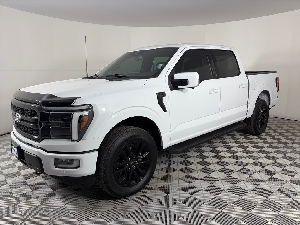 LARIAT BLACK APPEARANCE PACKAGE Black Grille, Black Exterior Badging, Gray Box Side Decal, Wheels: 20 Gloss Black Painted Aluminum, Body-Color Front & Rear Bumpers, Body-Color Skull Caps & Door Handles, Black Taillamp Bezels, Dual Exhaust w/Black Tips, Matte Black Tailgate F-150 Decal, Dark Interior Appliques, MAX TOW ELECTRONIC LOCKING W/3.55 AXLE RATIO, TRANSMISSION: ELECTRONIC 10-SPEED AUTOMATIC SelectShift w/progressive range select and selectable drive modes: normal, ECO, sport, tow/haul, slippery, deep snow/sand and mud/rut (STD). Ford LARIAT with Oxford White exterior and Black interior features a 8 Cylinder Engine with 400 HP at 6000 RPM*.