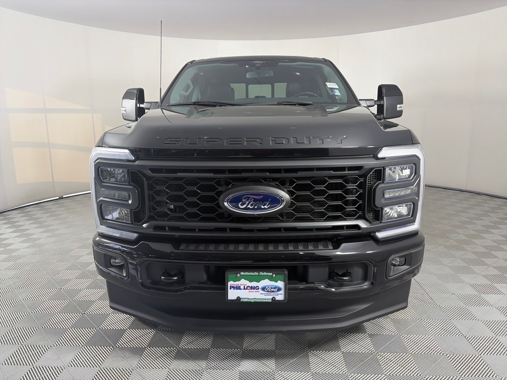 ENGINE: 6.7L 4V OHV POWER STROKE V8 TURBO DIESEL B20 manual push-button engine-exhaust braking, Operator Commanded Regeneration (OCR) and intelligent oil-life monitor, 34 Gallon Fuel Tank, GVWR: 12,000 lb Payload Package, 3.31 Axle Ratio, Dual 68 AH/65 AGM Batteries, SPORT APPEARANCE PACKAGE dark fender badge, Black Tow Hooks, Wheels: 20 Dark Carbonized Gray Painted Aluminum, High-gloss, matte black hub covers/center ornaments, Body-Color Front & Rear Bumpers, Tires: LT275/65Rx20E BSW Automatic Transmission (4), Spare may not be the same as road tire, Sport 4x4 Box Side Decal, Dark Painted Grille, Platform Running Boards, Chrome Exhaust Tip, TOUGH BED SPRAY-IN BEDLINER tailgate-guard, black box bed tie-down hooks and black bed attachment bolts, ELECTRONIC-LOCKING W/3.55 AXLE RATIO, TRANSMISSION: TORQSHIFT 10-SPEED AUTOMATIC SelectShift and selectable drive modes: normal, eco, slippery roads, tow/haul and off-road (STD). Ford LARIAT with Agate Black exterior and Black Onyx interior features a 8 Cylinder Engine with 475 HP at 2600 RPM*.