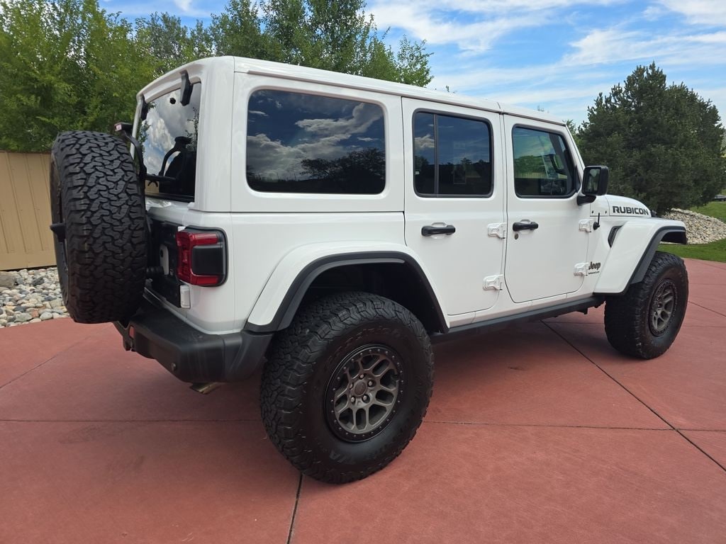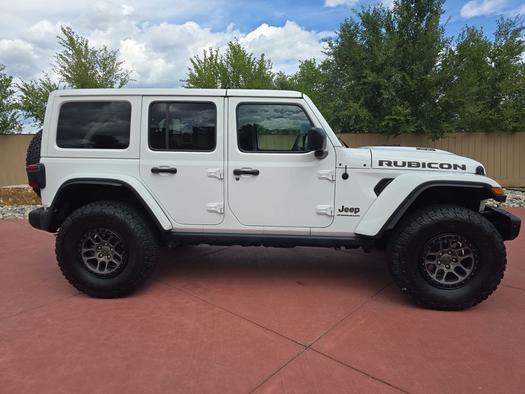Quick Order Package 27X Rubicon 392, Trailer Tow Package (7 & 4 Pin Wiring Harness and Class II Receiver Hitch), Xtreme Recon 35" Tire Package (DISC) (35" Tire Rubicon 392 Suspension (DISC), 4.56 Rear Axle Ratio, MOPAR Hinge-Gate Reinforcement, Wheel Flare Extensions, and Wheels: 17" x 8" Bronze Beadlock Capable), Jeep Certified, 3.73 Rear Axle Ratio, 4-Wheel Disc Brakes, 9 Speakers, ABS brakes, Air Conditioning, Alloy wheels, AM/FM radio: SiriusXM, Apple CarPlay/Android Auto, Auto High-beam Headlights, Auto-dimming Rear-View mirror, Automatic temperature control, Brake assist, Compass, Convertible HardTop, Delay-off headlights, Driver door bin, Driver vanity mirror, Dual front impact airbags, Dual front side impact airbags, Electronic Stability Control, Emergency communication system: SiriusXM Guardian, Freedom Panel Storage Bag, Front anti-roll bar, Front Bucket Seats, Front Center Armrest w/Storage, Front dual zone A/C, Front fog lights, Front License Plate Bracket, Front reading lights, Fully automatic headlights, Garage door transmitter, Glass rear window, Heated door mirrors, Heated front seats, Heated steering wheel, Illuminated entry, Integrated Off-Road Camera, Integrated roll-over protection, Leather Shift Knob, Leather steering wheel, Leather Trimmed Bucket Seats, Low tire pressure warning, MOPAR Satin Black Grille, Navigation System, Occupant sensing airbag, Outside temperature display, Panic alarm, ParkView Rear Back-Up Camera, Passenger door bin, Passenger vanity mirror, Power door mirrors, Power steering, Power windows, Radio data system, Radio: Uconnect 4C Nav w/8.4" Display, Rear anti-roll bar, Rear reading lights, Rear seat center armrest, Rear Window Defroster, Rear window defroster, Rear window wiper, Rear Window Wiper/Washer, Remote keyless entry, Rubicon 392 Suspension, Security system, Speed control, Split folding rear seat, Steering wheel mounted audio controls, Tachometer, Telescoping steering wheel, Tilt steering wheel, Traction control, Trip computer, Variably intermittent wipers, Voltmeter, and Wheels: 17" x 7.5" Beadlock Capable.