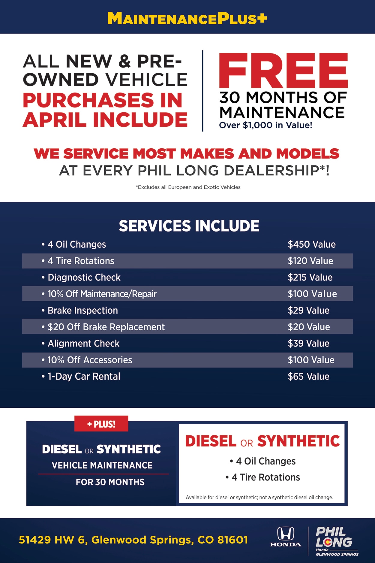 All Purchases Include 30 Month No Cost Maintenance Plan -