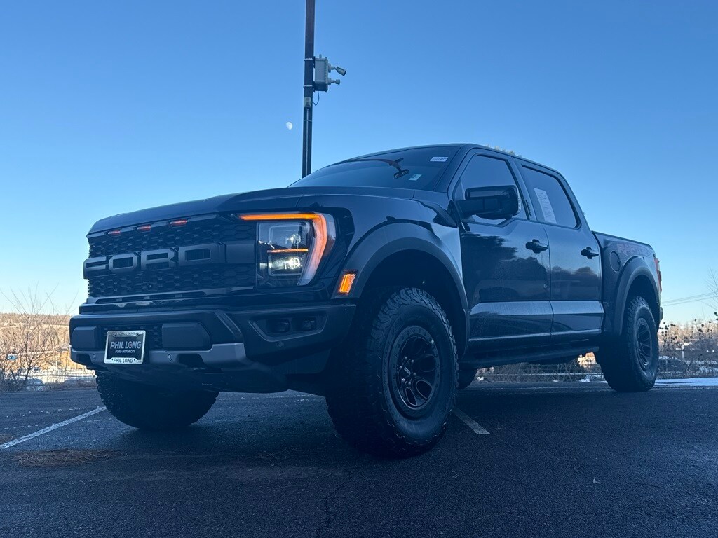 Equipment Group 801A Standard, GVWR: 7,300 lbs Payload Package, Moonroof & Tailgate (Power Tailgate and Twin Panel Moonroof), Raptor Carbon Fiber Package, Raptor Exterior Graphics Package, 4WD, 17" Cast Aluminum Wheels, 17" Forged Aluminum Bead-Lock Capable Wheels, 18 Speakers, 4-Wheel Disc Brakes, ABS brakes, Adaptive suspension, Adjustable pedals, Air Conditioning, Alloy wheels, AM/FM radio: SiriusXM with 360L, Auto High-beam Headlights, Auto Start-Stop Removal (DISC), Auto tilt-away steering wheel, Auto-dimming door mirrors, Auto-dimming Rear-View mirror, Automatic temperature control, Brake assist, Bumpers: body-color, Compass, Delay-off headlights, Driver door bin, Driver vanity mirror, Dual front impact airbags, Dual front side impact airbags, Electronic Locking w/4.10 Axle Ratio, Electronic Stability Control, Emergency communication system, Exterior Parking Camera Rear, Front anti-roll bar, Front Bucket Seats, Front Center Armrest, Front dual zone A/C, Front fog lights, Front License Plate Bracket, Front reading lights, Front wheel independent suspension, Fully automatic headlights, Garage door transmitter, Heated door mirrors, Heated front seats, Heated rear seats, Heated steering wheel, Illuminated entry, Inclination/Intrusion Sensor Removal, Lane Departure Warning System, Leather Trim Seats w/Heated 2nd Row, Low tire pressure warning, Memory seat, Navigation system: Connected Navigation, Occupant sensing airbag, Outside temperature display, Overhead airbag, Overhead console, Panic alarm, Passenger door bin, Passenger vanity mirror, Pedal memory, Power door mirrors, Power driver seat, Power passenger seat, Power steering, Power windows, Radio data system, Radio: B&O Unleashed Sound System by Bang & Olufsen, Rain sensing wipers, Rear reading lights, Rear step bumper, Rear window defroster, Remote keyless entry, Security system, Speed control, Speed-sensing steering, Split folding rear seat, Steering Wheel Heat Removal (DISC), Steering wheel memory, Steering wheel mounted audio controls, SYNC 4 w/Enhanced Voice Recognition, Tachometer, Telescoping steering wheel, Tilt steering wheel, Tough Bed Spray-In Bedliner, Traction control, Trip computer, Turn signal indicator mirrors, Variably intermittent wipers, and Ventilated front seats.