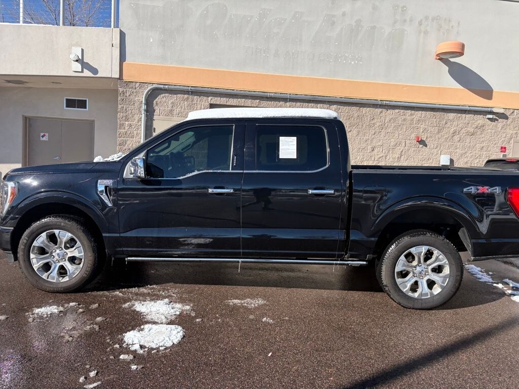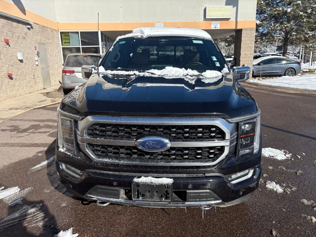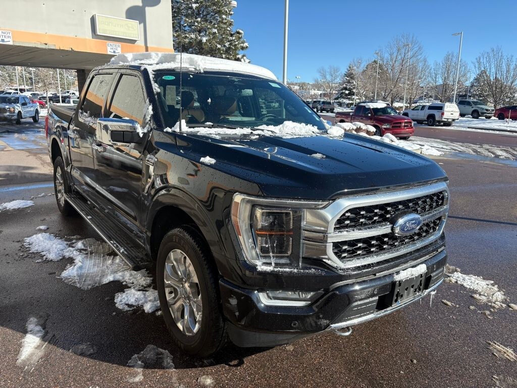 2023 Ford F-150 Platinum Black Metallic 4WD 10-Speed Automatic 3.5L V6 EcoBoost CARFAX One-Owner. 4WD.