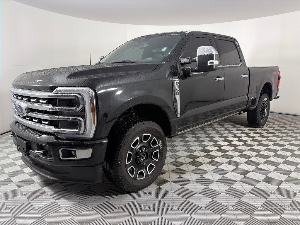 ENGINE: 6.7L 4V OHV POWER STROKE V8 TURBO DIESEL B20 manual push-button engine-exhaust braking, Operator Commanded Regeneration (OCR) and intelligent oil-life monitor, 34 Gallon Fuel Tank, GVWR: 12,000 lb Payload Package, 3.31 Axle Ratio, Dual 68 AH AGM 750 CCA Batteries, TWIN PANEL POWER MOONROOF map lights and moonroof switches, ELECTRONIC-LOCKING W/3.55 AXLE RATIO, TRANSMISSION: TORQSHIFT 10-SPEED AUTOMATIC SelectShift and selectable drive modes: normal, eco, slippery roads, tow/haul and off-road (STD). Ford Platinum with Agate Black exterior and Black Onyx interior features a 8 Cylinder Engine with 475 HP at 2600 RPM*.