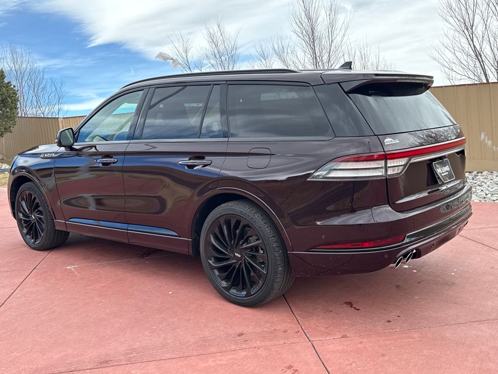 Class IV Trailer Tow Package (4-Pin & 7-Pin Connectors, Blind Spot Information System, Class IV Hitch & Wiring, Smart Trailer Tow, and Trailer Sway Control), Elements Package Plus (Auto Air Refresh, Auto Heated/Ventilated Driver & Passenger Seats, Heated Steering Wheel, Heated VisioBlade Wipers, and Heated/Ventilated 2nd Row Outboard Seats), Equipment Group 201A (Head-Up Display and Phone As A Key), Illumination Package (Adaptive Pixel LED Headlamps, Illuminated Lincoln Star in Grille, and LED Fog Lamps), Jet Package (Black Exterior Elements, Body-Color Exterior Elements, and Wheels: 22" Black Aluminum), Lincoln Co-Pilot360 1.5 Plus (Active Park Assist 2.0, Evasive Steering Assist, Intelligent Adaptive Cruise Control, and Reverse Brake Assist), Luxury Package (30-Way Perfect Position Seats w/Active Motion, Radio: Revel Ultima 3D Audio System w/28 Speakers, and Rear Door Sunshades), Navigation System, 14 Speakers, 3.58 Axle Ratio, 3rd row seats: split-bench, 4-Wheel Disc Brakes, ABS brakes, Air Conditioning, All-Weather 1st & 2nd Row Floor Liners (16A), Alloy wheels, AM/FM radio: SiriusXM, Audio memory, Auto High-beam Headlights, Auto-dimming door mirrors, Auto-dimming Rear-View mirror, Automatic temperature control, Brake assist, Bumpers: body-color, Compass, Delay-off headlights, Driver door bin, Driver vanity mirror, Dual front impact airbags, Dual front side impact airbags, Electronic Stability Control, Emergency communication system, Four wheel independent suspension, Front anti-roll bar, Front Bucket Seats, Front Center Armrest, Front dual zone A/C, Front reading lights, Full Rear Console, Fully automatic headlights, Garage door transmitter, Hands-Free Liftgate Delete, Heated door mirrors, Heated front seats, HVAC memory, Illuminated entry, Knee airbag, Leather steering wheel, Low tire pressure warning, Memory seat, Occupant sensing airbag, Outside temperature display, Overhead airbag, Overhead console, Panic alarm, Passenger door bin, Passenger vanity mirror, Power door mirrors, Power driver seat, Power Liftgate, Power moonroof: Panoramic Vista Roof, Power passenger seat, Power steering, Power windows, Premium Lthr Heated/Ventilated Fnt Captain's Chairs, Radio data system, Radio: Revel AM/FM Audio System w/14 Speakers, Rain sensing wipers, Rear air conditioning, Rear anti-roll bar, Rear audio controls, Rear dual zone A/C, Rear reading lights, Rear window defroster, Rear window wiper, Remote keyless entry, Security system, Siriu