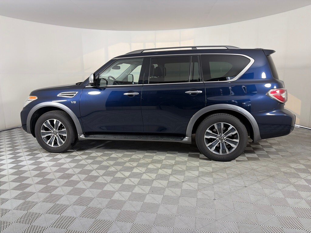 MOONROOF PACKAGE front tilt and rear slide, Power Glass Sliding & Tilting Moonroof w/Sunshade, one-touch open/close w/auto-reverse feature, privacy glass and sunscreen dots, 2ND & 3RD ROW CARPETED MATS. Nissan SL with Hermosa Blue exterior and Charcoal interior features a 8 Cylinder Engine with 390 HP at 5800 RPM*.